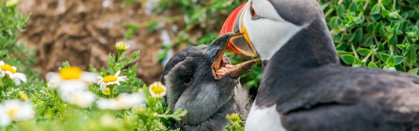 Puffins try to provide a stable home for their young, returning to the same nest year upon year and making it homely. They line a section of the nest with feathers to protect and incubate the eggs, which acts as a cosy bedroom area, and craft a toilet section away from the puffling’s sleeping area to keep their precious feathers clean and dry.