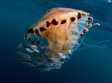Jellyfish play a huge role in lots of marine food chains and provide habitats for smaller species which shelter under jellyfish bells, protected from predators by their tentacles.